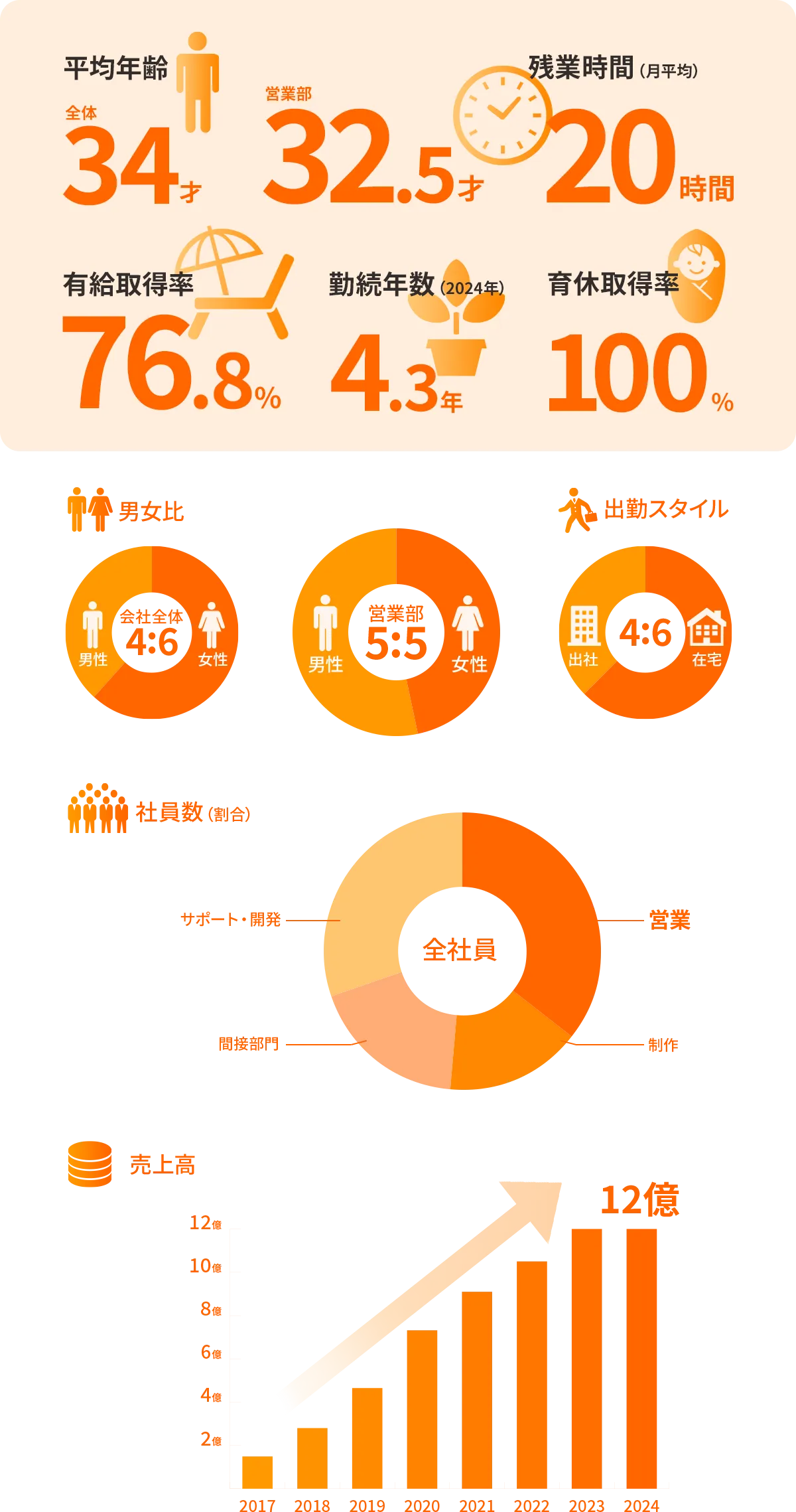 創業から10年と若い会社ではありますが、少しずつでも確実に従業員の環境が良くなるよう、新たな制度を随時導入しています。